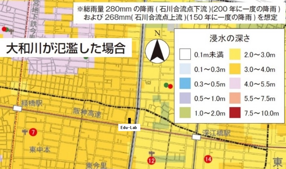 大阪市が提供するハザードマップをもとに作成しております。